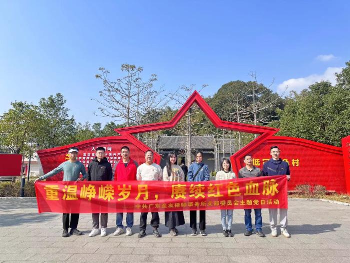 為深入學(xué)習(xí)貫徹習(xí)近平新時代中國特色社會主義思想,在尋根溯源中追憶初心,在牢記使命中勇于擔當,2024年1月6日,中共廣東至友律師事務(wù)所支部委員會支部書記黃尚興組織全體律師、行政人員前往惠州龍門低冚村開展“重溫崢嶸歲月,賡續(xù)紅色血脈”主題黨日活動,接受革命歷史傳統(tǒng)教育,回顧黨的光輝歷程,緬懷黨的豐功偉績。