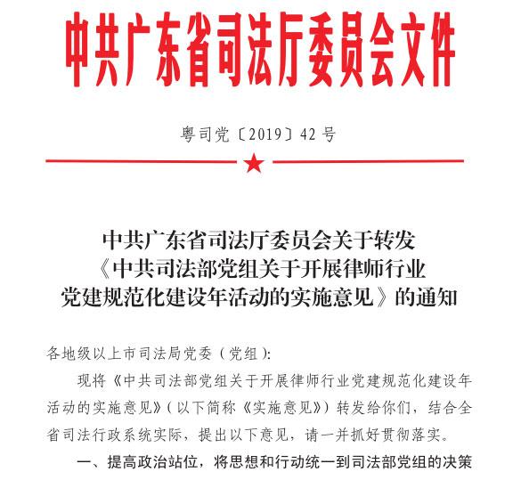 中共廣東省司法廳委員會關(guān)于轉(zhuǎn)發(fā)《中共司法部黨組關(guān)于開展律師行業(yè)黨建規(guī)范化建設(shè)年活動的實(shí)施》的通知