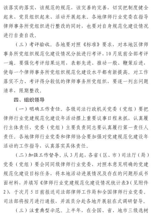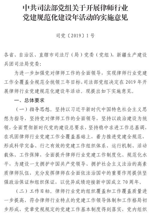 中共司法廳部黨組關(guān)于開展律師行業(yè)黨建規(guī)范化建設(shè)年活動的實施意見