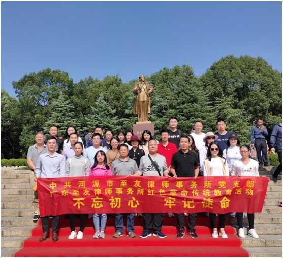 2019年10月19日,中共河源市至友律師事務(wù)所黨支部組織廣東至友律師事務(wù)所全體黨員律師和非黨員律師等人到湖南省開展“不忘初心,牢記使命”主題教育活動(dòng),學(xué)習(xí)紅色革命精神。