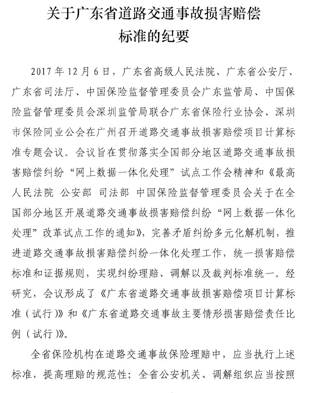 關(guān)于廣東省道路交通事故損害標(biāo)準(zhǔn)的紀(jì)要