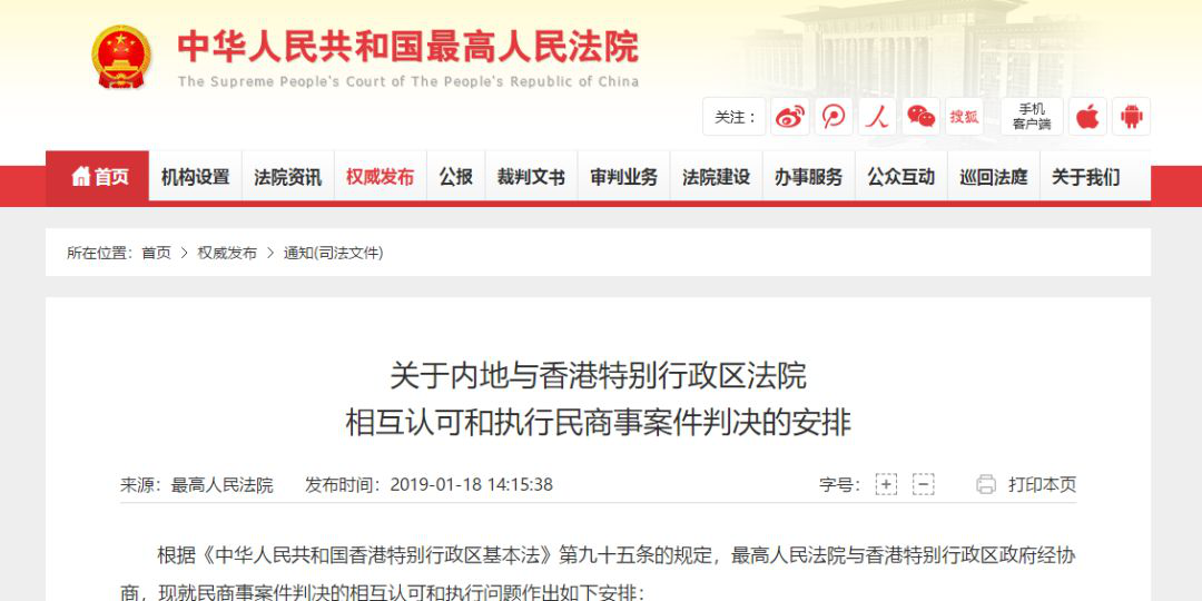 最高院發(fā)布:關(guān)于內(nèi)地與香港特別行政區(qū)法院相互認(rèn)可和執(zhí)行民商事案件判決的安排