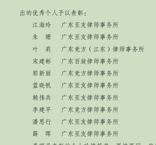 至友榮譽丨我所江海玲、朱珊、藍曉帆、賴偉兵、潘思行、薛暉律師被紫金縣司法局評為“優(yōu)秀個人”