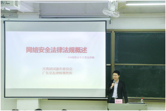 2019年4月16日,由河源職業(yè)技術學院和源城區(qū)法律援助處聯(lián)合舉辦“4.15”全民國家安全教育日普法講座在教學樓D107教室舉行。我所陳超然律師應邀到河職院開展網(wǎng)絡安全法律法規(guī)普法講座,參加本次講座的還有團市委的工作人員、河源職業(yè)技術學院法律診所人員和法律協(xié)會人員、以及眾多來自不同專業(yè)的學生。陳律師為現(xiàn)場200多名學生介紹網(wǎng)絡安全涉及的法律關系以及《網(wǎng)絡安全法》、《刑法》相關法律條款進行了深入講解,并以“熊貓燒香”、“棱鏡門”等案例進行了分析和講解。最后提出隨著網(wǎng)絡技術的發(fā)展,更多的新技術、新概念誕生,網(wǎng)絡安全的邊界只會越來越大,面對此等形勢,同學們應遵守網(wǎng)絡安全法律法規(guī),加強法律防范意識、謹防網(wǎng)絡詐騙、增強信息保護意識。