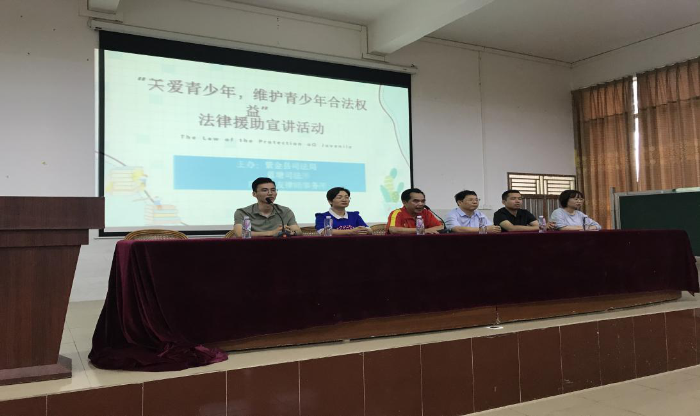 我所成遠帶、盧和東、賴偉兵、潘思行律師、李錦檸實習律師到紫金縣藍塘鎮(zhèn)藍塘中學開展“關愛青少年,維護青少年合法權益”法治講座